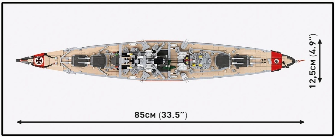 Die Ikone der Marinegeschichte als BISMARCK-Modell bietet ein monumentales Bau- und Ausstellungserlebnis. Dank authentischer Proportionen, detailliertem Aufbau und Bewaffnung sticht es in jeder Sammlung hervor. Alle Markierungen und Details sind dauerhaft direkt auf die Teile gedruckt, sodass das Modell über viele Jahre ein perfektes Erscheinungsbild behält.