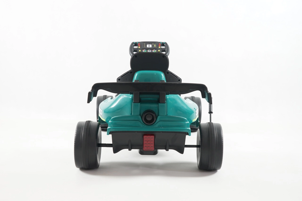 Das Go-Kart in Grün bietet Kindern ein realistisches Fahrerlebnis. Dank des Kettenantriebs mit vollständig gekapseltem Getriebe ist die Fahrt sicher und zuverlässig, während die Handbremse ein kontrolliertes Anhalten ermöglicht. EVA-Räder mit Kugellagern dämpfen Unebenheiten und gewährleisten einen leisen, sanften Lauf auf Asphalt und Pflastersteinen.