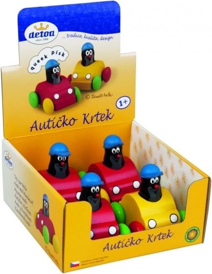 Genießen Sie den Spielspaß mit dem hölzernen Auto, das eine niedliche Maulwurfsfigur hat. Beim Drücken des Maulwurfs ertönt ein Quietschen, was Kinder erfreut und unterhält. Wählen Sie aus zwei Farbvarianten, um die passende für Ihr Kind zu finden.