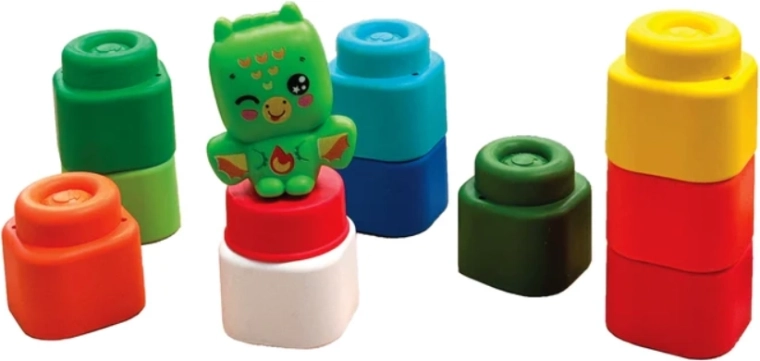 Dank der einfachen Greifbarkeit verbinden Kinder die Klötze mühelos und bauen erste Türmchen und Konstruktionen. Das Spiel fördert auf natürliche Weise die Feinmotorik, die Hand-Auge-Koordination, die Kreativität und unterstützt die sensorische Wahrnehmung. Für zusätzlichen Spaß sorgt die niedliche Drachenfigur, die zu Geschichten und Rollenspielen einlädt.