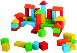 Dieses klassische Holz-Bauset der tschechischen Marke Detoa enthält 50 farbenfrohe Teile in Grundformen – Zylinder, Quader und Würfel. Kinder trainieren Handkoordination, logisches Denken und Fantasie beim Bau von Türmen, Häuschen oder Brücken. Natürliches Material und robuste Verarbeitung garantieren eine lange Lebensdauer und sicheres Spiel.