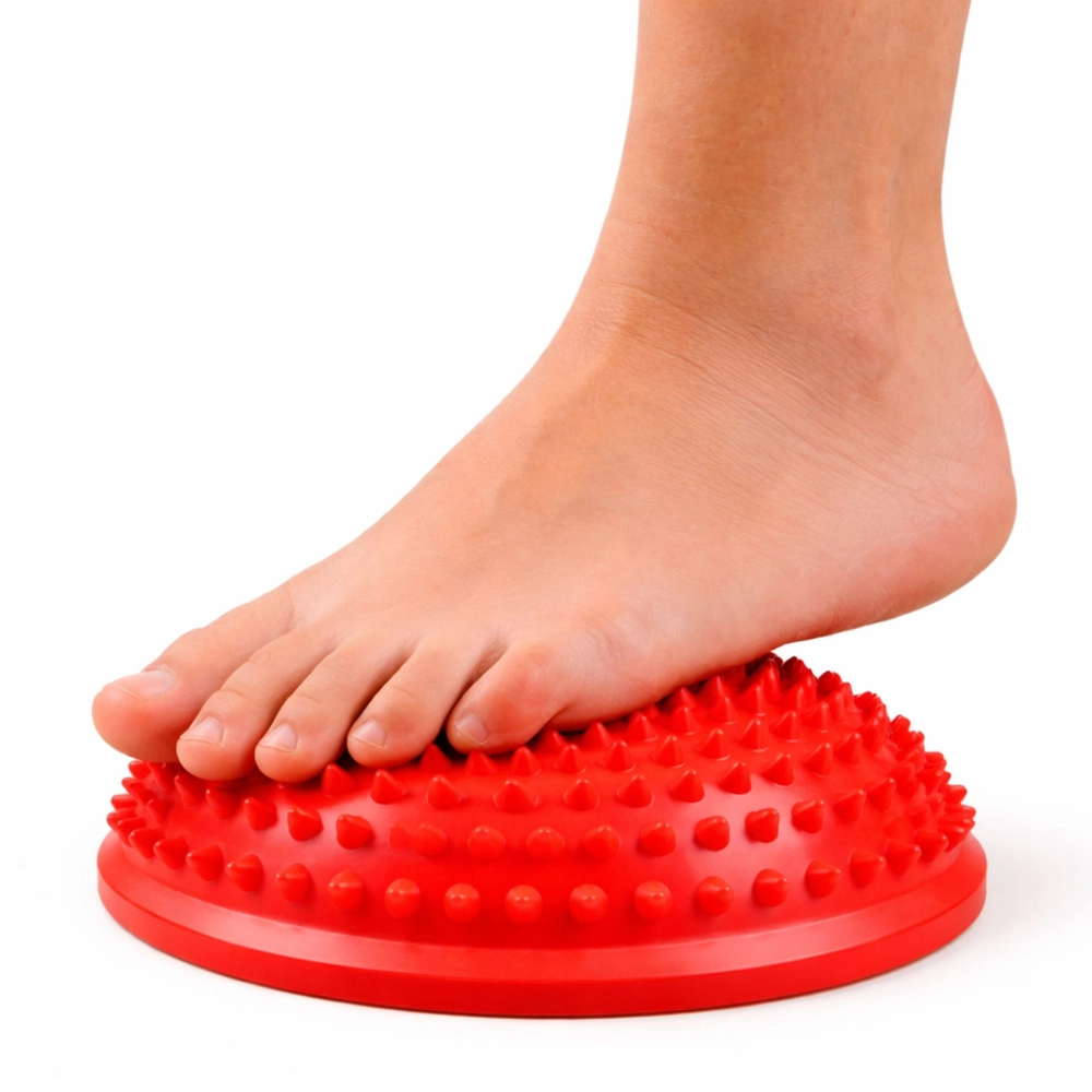 Diese rote sensorische Halbkugel ist ein praktisches Hilfsmittel zur Stärkung des Rumpfes, zur Verbesserung der Koordination und zur Lösung von Muskelverspannungen. Die texturierte Oberfläche mit Massagenoppen bietet eine angenehme Stimulation der Füße und unterstützt die korrekte Aktivierung des Fußgewölbes.