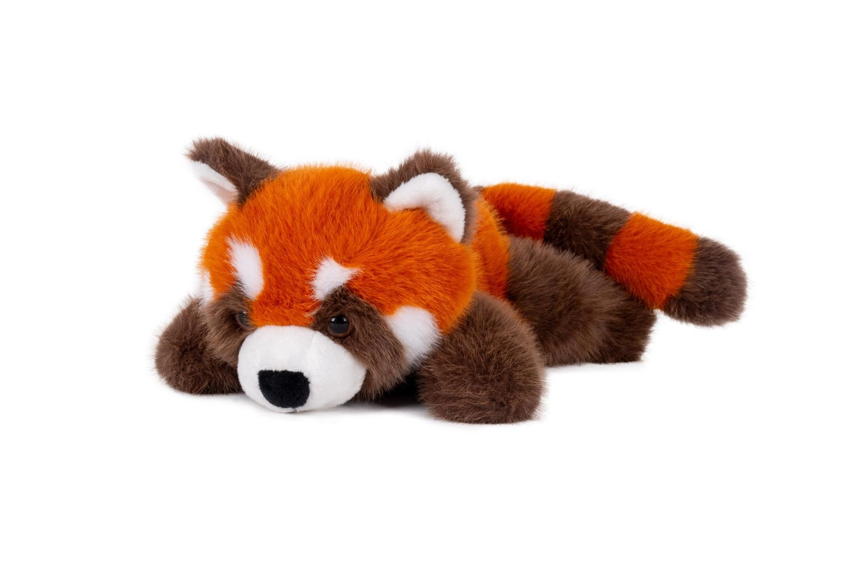 Dieser liegende rote Plüschpanda bringt ein Stück Bergwald nach Hause. Er wirkt dank der liebevoll ausgearbeiteten Details und der realistischen Färbung wie ein echtes Tier. Die zarte, weiche Oberfläche ist angenehm zu berühren und lädt zum Kuscheln ein.