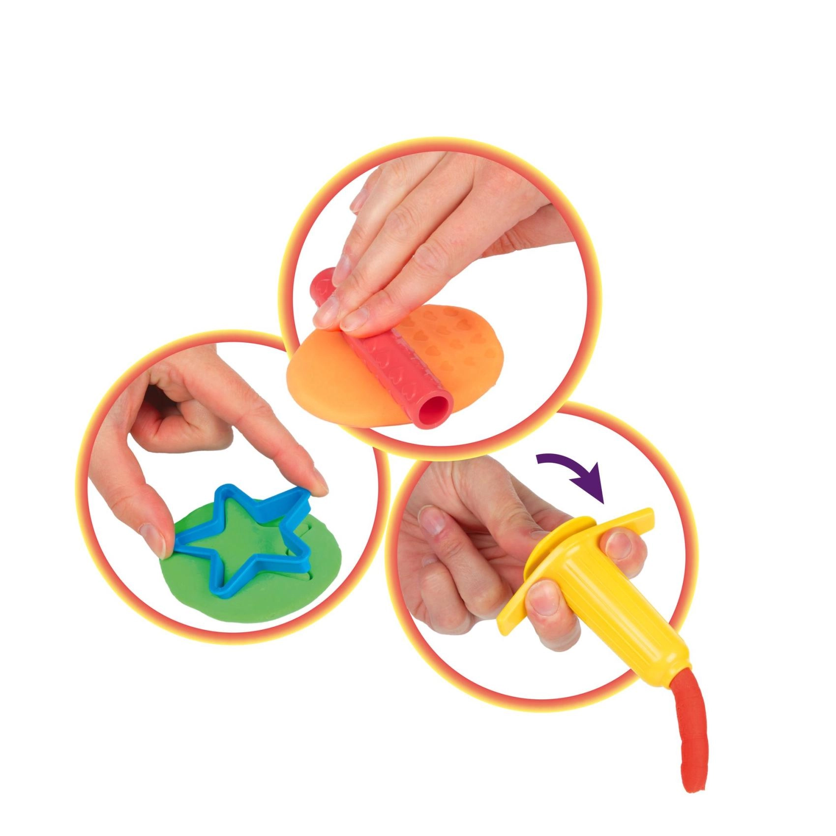 Dieses vielseitige Knetset für Kinder fördert Feinmotorik, Kreativität und Fantasie. Kinder können ganz einfach walzen, schneiden, ausstechen und pressen, um verschiedene Formen, Tiere oder Weltraumobjekte zu erschaffen und ihre eigenen farbenfrohen Kunstwerke zu gestalten. Die weiche Knete in acht kräftigen Farben lässt sich gut verarbeiten und ist ideal für die ersten Bastelversuche ebenso wie für fortgeschrittene Ideen.