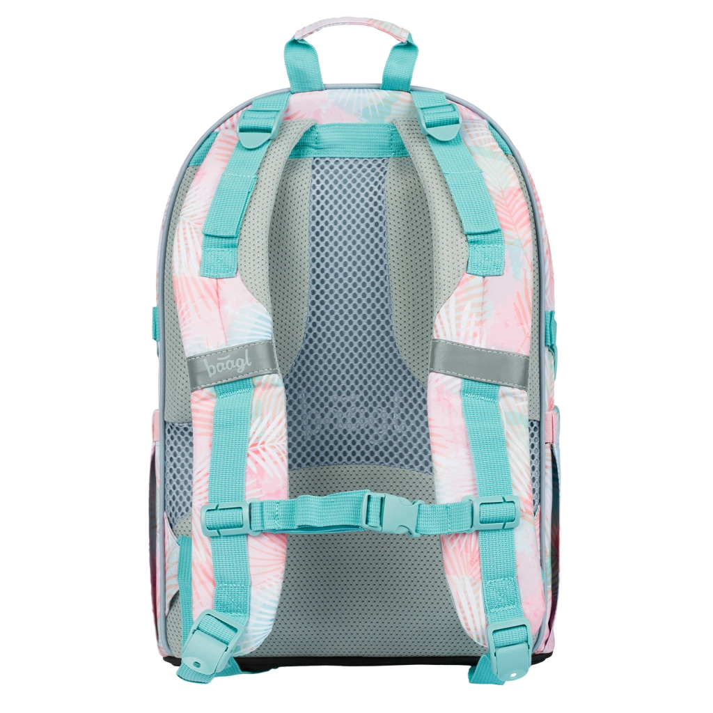 Das BAAGL Schulset Skate Sunset ist die ideale Wahl für Schüler, die Komfort, Funktionalität und ein frisches Pastell-Design mit Palmenblättern verbinden möchten. Der Star ist der ergonomische Rucksack mit gepolstertem Rücken, verstellbaren Schulter- und Brustgurten sowie Kompressionsriemen. Drei Fächer mit Organizer und ein gepolstertes Fach für einen 15"-Laptop halten Bücher und Technik sicher und perfekt organisiert.