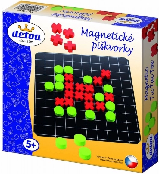 Magnetisches Tic-Tac-Toe Detoa ist ein beliebtes Strategiespiel für zwei Spieler und ideal für unterwegs. In der stilvollen und praktischen Verpackung finden Sie eine Blechtafel und hölzerne Spielsteine mit Magneten.