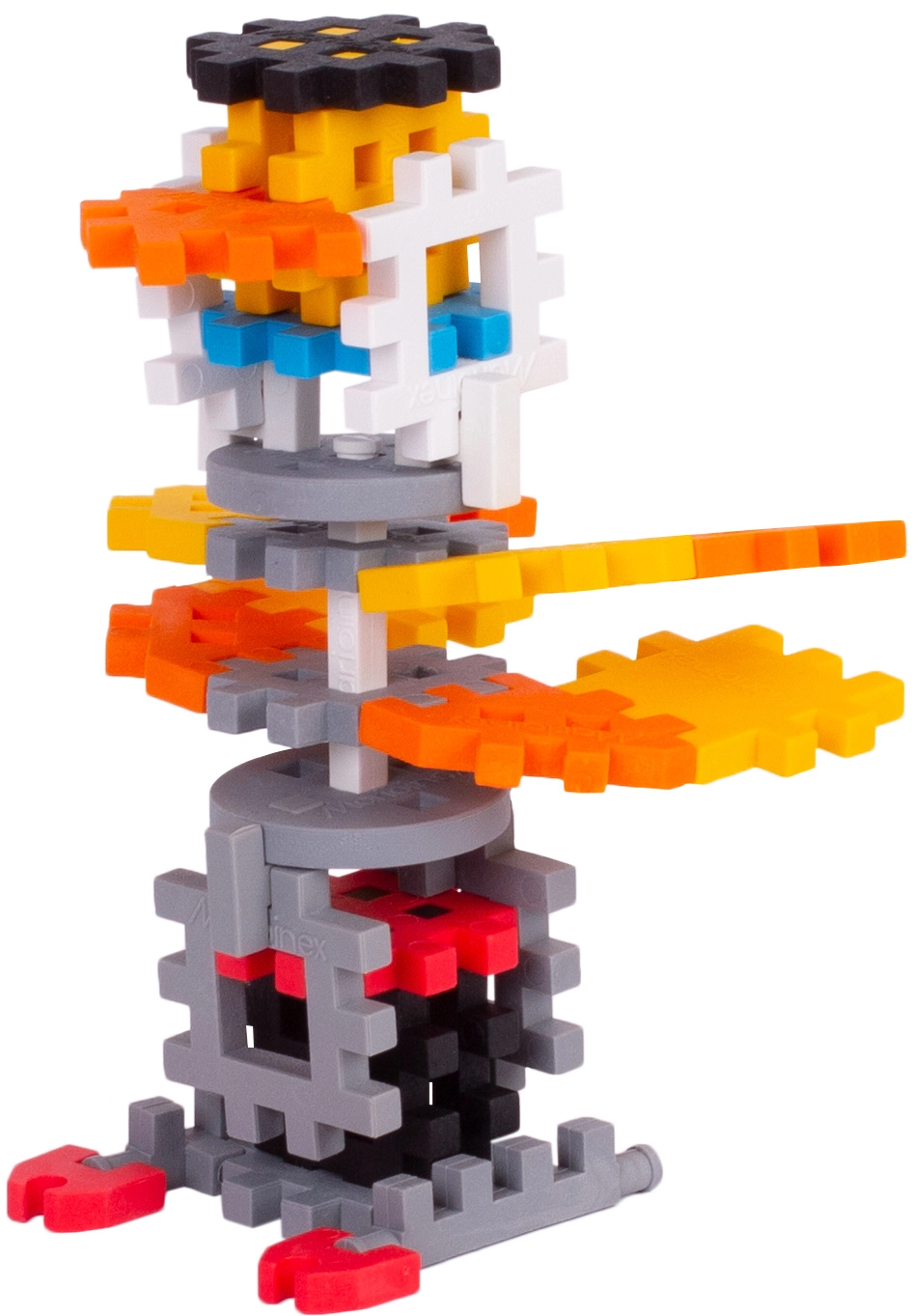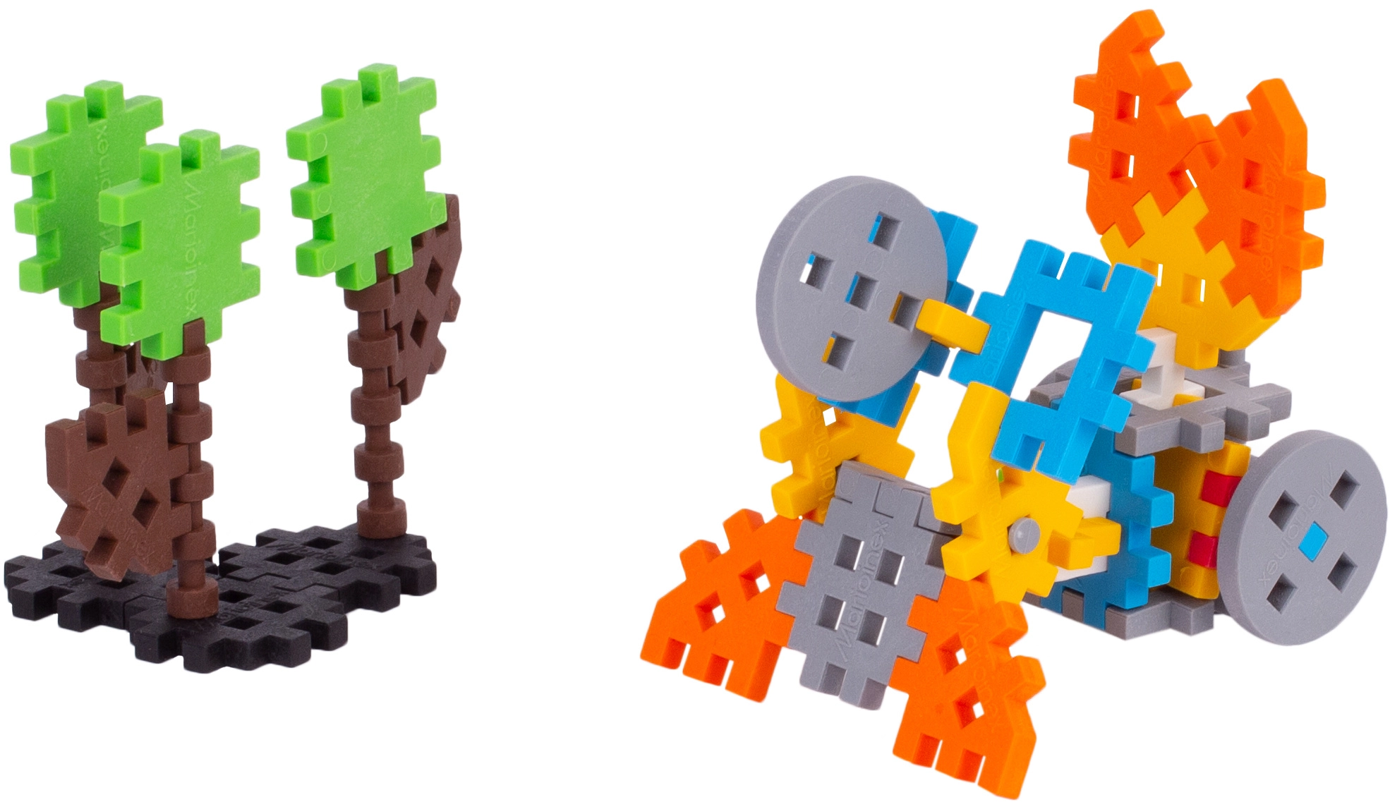 Bauen Sie farbenfrohe Modelle vom Vögelchen bis zu kleinen Maschinen und Fahrzeugen. Das modulare System fördert die Vorstellungskraft und Geduld beim Zusammenstecken.
