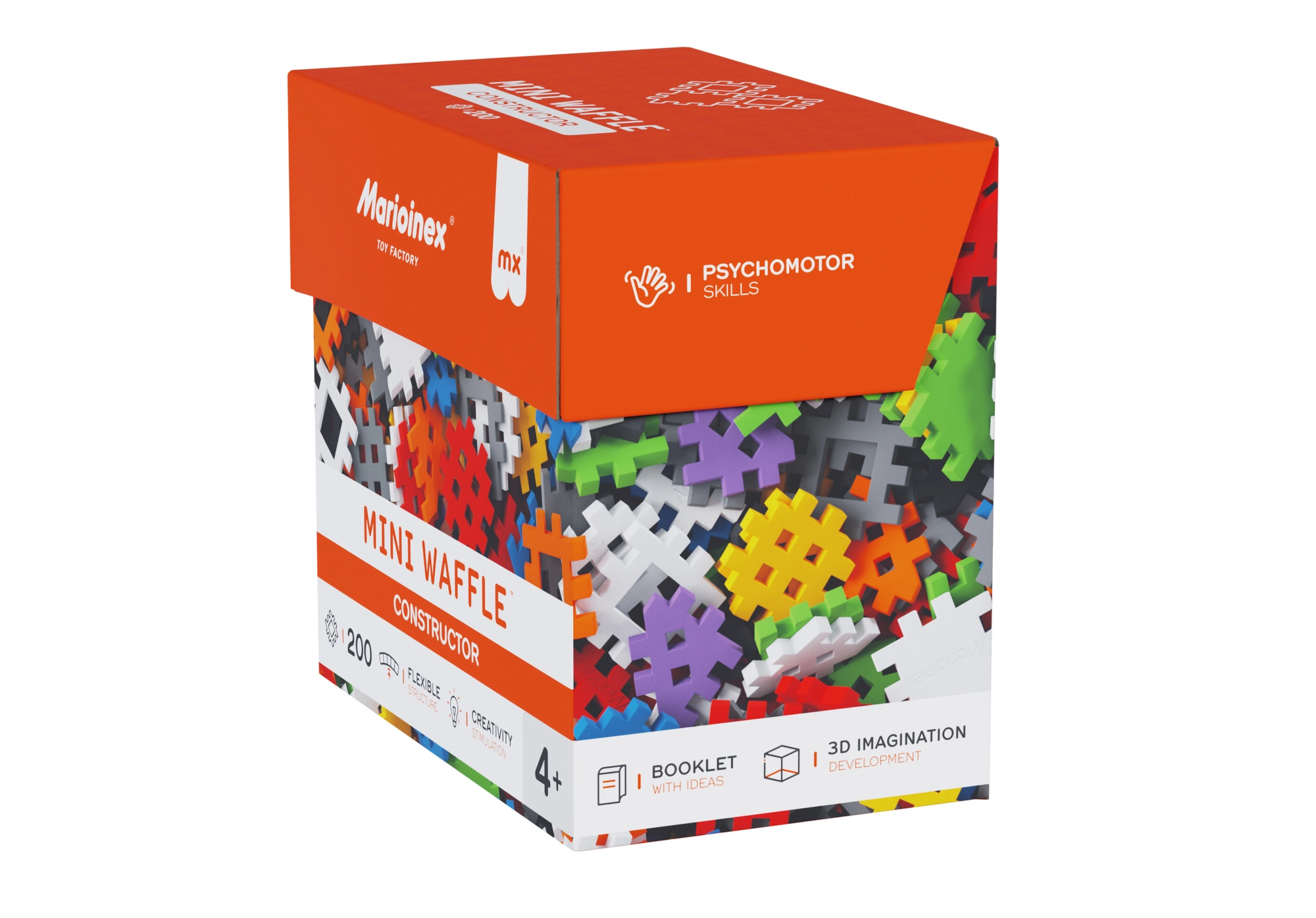 Das Bauset MARIOINEX Mini Waffle Constructor vereint Spiel und Lernen. Dank der einzigartigen Form der Elemente lassen sich Modelle leicht zusammenbauen, halten stabil und können dennoch problemlos wieder zerlegt werden. Enthalten ist ein inspirierendes Booklet mit Ideen, das beim ersten Bauen hilft und weitere Fantasie anregt.
