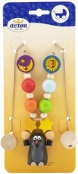 Der Kinderwagenanhänger mit dem Maulwurf ist ein ideales Hilfsmittel für Eltern, die ihre Kinder während Spaziergängen unterhalten und gleichzeitig in die Welt des Märchenhelden Maulwurf einführen möchten. Holzstücke und Textilelemente bieten visuelle und taktile Anreize für Ihr Kind.