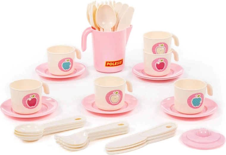 Das niedliche Teeservice Anička bietet Kindern alles für stilvolle Teerunden. Das Set für sechs Personen umfasst insgesamt 32 Teile – Tassen, Untertassen, Teller, Besteck, Teekanne und Servier-Zubehör. Fördert Fantasie, Kreativität und soziale Fähigkeiten beim Spielen von Gastgeberrollen.