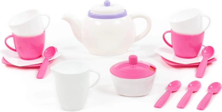 Das Kinder-Teeset ALICE erfreut kleine Gastgeberinnen und Gastgeber. Es enthält 18 Teile für 4 Personen in einer leichten und robusten Ausführung aus Kunststoff – Tassen, Untertassen, Löffel, Zuckerdose und Kännchen. Ideal für das Rollenspiel Teestunde und fördert bei gemeinsamem Spiel Fantasie, Kreativität und soziale Fähigkeiten.