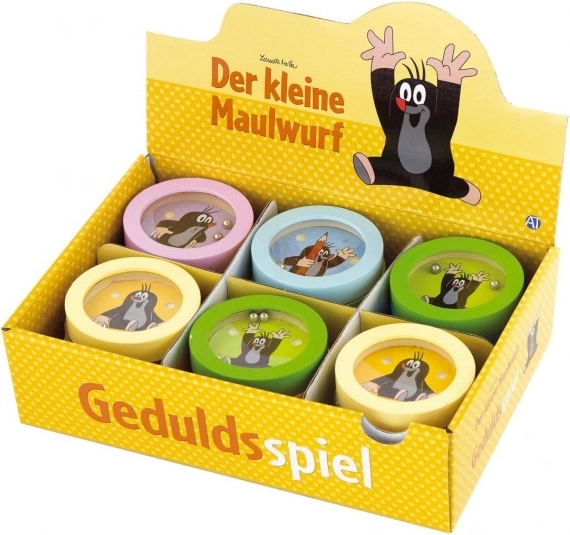 Unterhaltsames Taschen-Spiel für Kinder ab 3 Jahren, das Geduld und Geschicklichkeit trainiert. Mit sanften Bewegungen vier Metallkugeln in die richtigen Vertiefungen rund um die Figur DER MAULWURF lenken. Das Spiel fördert die Hand-Auge-Koordination, logisches Denken und Konzentration. Der Preis gilt für 1 Stück, erhältlich in verschiedenen Farbmotiven.