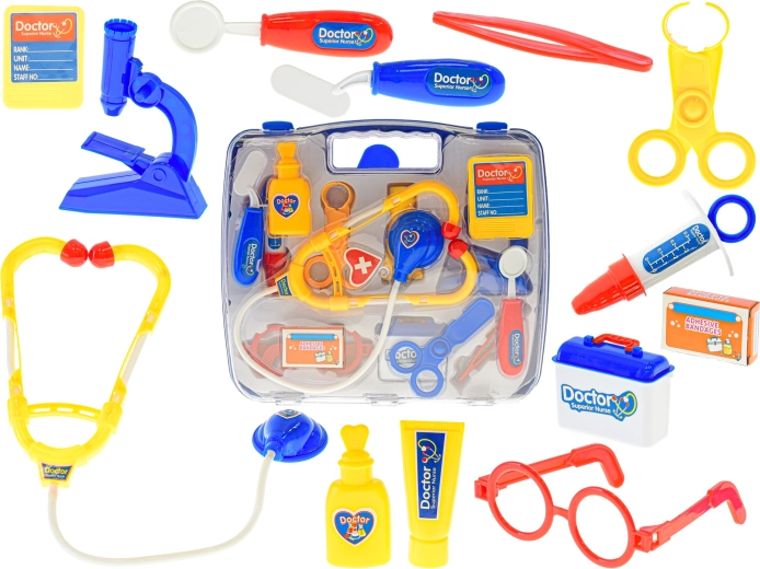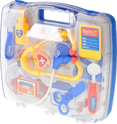 Dieser Doktorkoffer für Kinder bietet alles, was kleine Ärztinnen und Ärzte brauchen. Alle Komponenten bestehen aus leichtem und robustem Kunststoff und sind übersichtlich in einem verschließbaren Koffer verstaut, sodass nichts verloren geht und das Spiel überall beginnen kann.