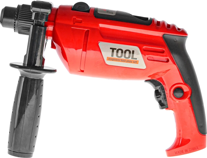 Diese rote Kinderbohrmaschine ist das ideale Spielzeug für kleine Baumeister, die die Arbeit der Erwachsenen nachahmen möchten. Dank des rotierenden Aufsatzes und des realistischen Bohrgeräuschs erleben Kinder ein echtes Heimwerkergefühl – sicher und spielerisch.