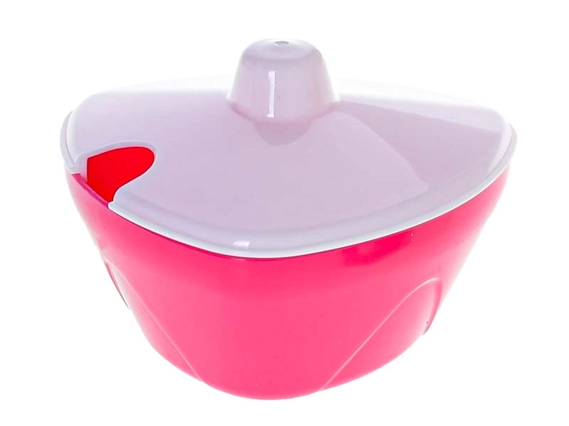 Glatte, abwaschbare Kunststoffteile mit Deckeln und Schälchen für sicheres Spielen für Kinder ab 3 Jahren.