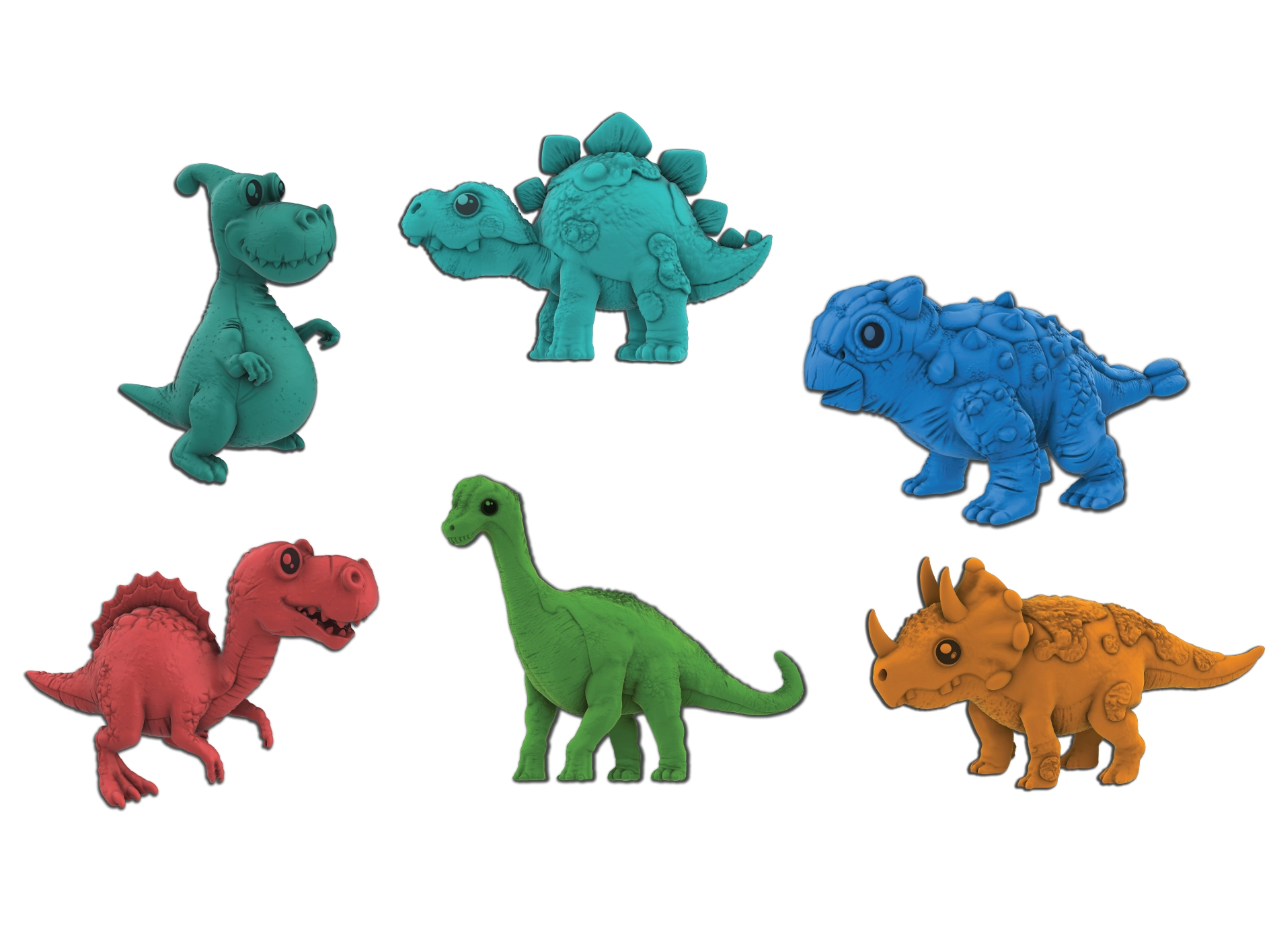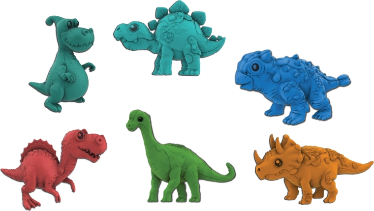 Die Eier sind in zwei Farben – rot und orange – erhältlich und verbergen zufällig eine von acht Dinosaurierarten: T‑Rex, Brontosaurus, Stegosaurus, Triceratops, Parasaurolophus, Ankylosaurus, Spinosaurus oder Plesiosaurus. Eine konkrete Farbe und Art kann nicht im Voraus gewählt werden, was bei jedem Kauf für ein Überraschungselement sorgt.