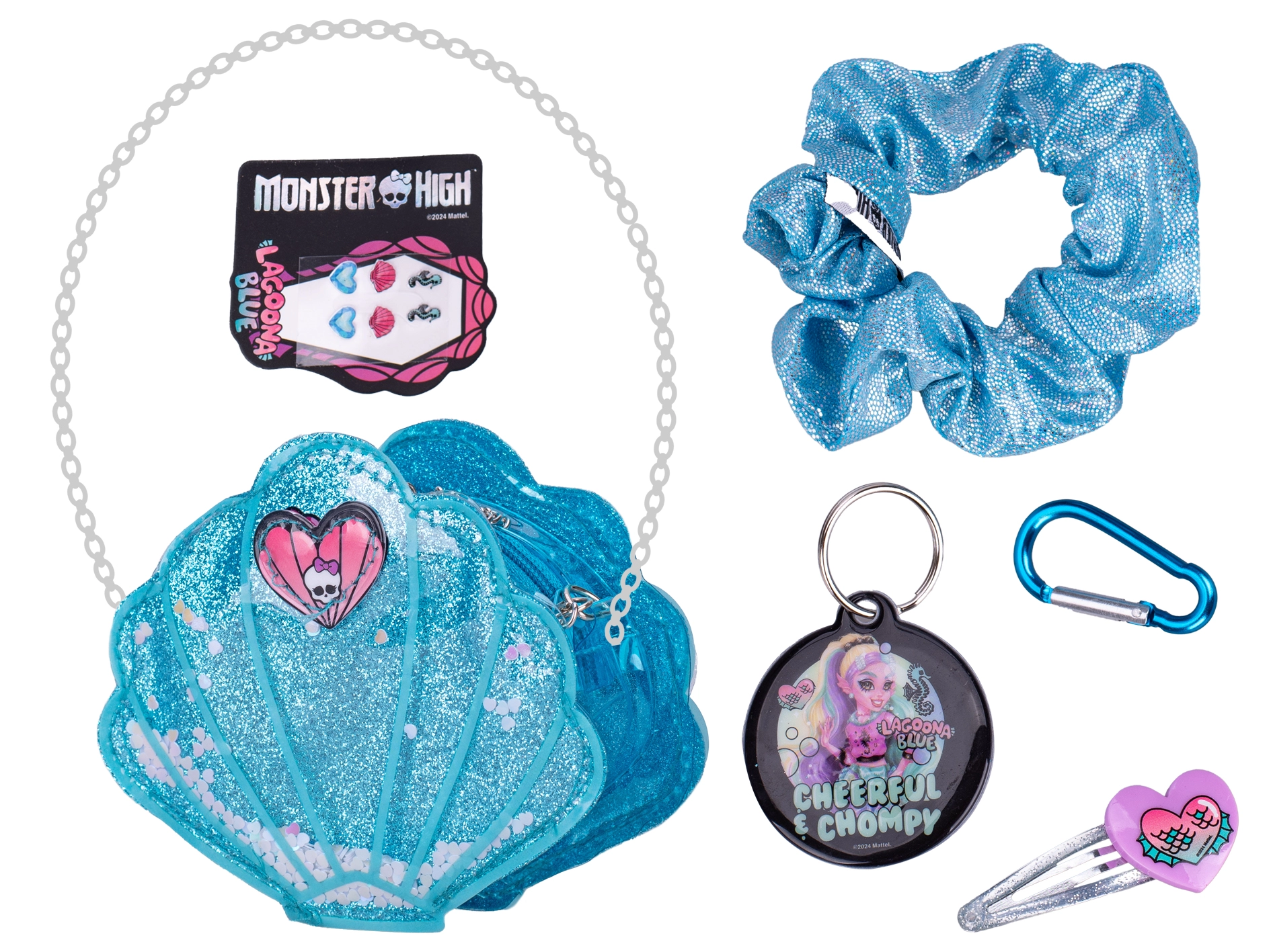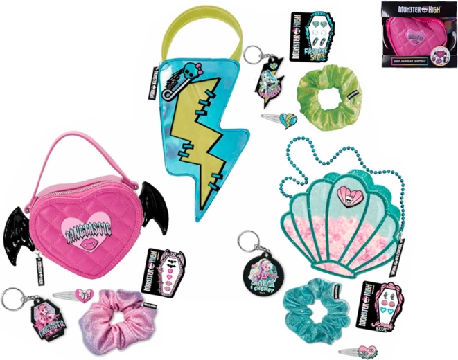 Entdecken Sie den Zauber der MONSTER HIGH Serie mit der niedlichen Mini-Handtasche, die jede kleine Fashionista begeistern wird. Drei originelle Motive – Muschel, Blitz und Herz – verweisen auf beliebte Charaktere und ihren einzigartigen Stil. Jede Ausführung wird durch stylische Kleinigkeiten ergänzt, die zur Persönlichkeit der jeweiligen Figur passen.