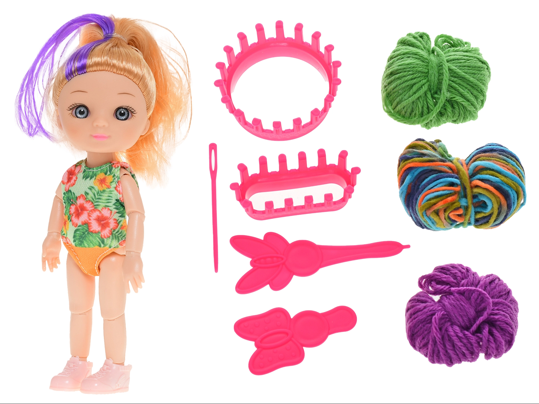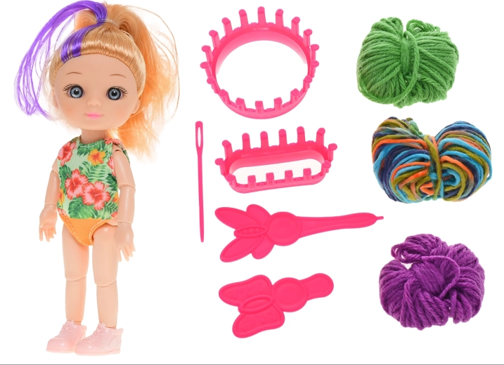 Dieses kreative Set verbindet Spiel und Lernen. Die 16 cm große Puppe begleitet Kinder bei ihren ersten Schritten in die Welt des Strickens – mit Strickrahmen und Garn können sie die Grundlagen ausprobieren und kleine handgemachte Werke erstellen. Ein ideales Geschenk für geschickte kleine Hände.