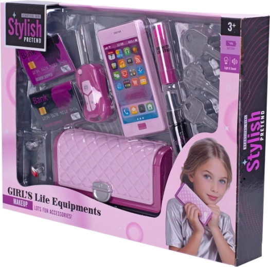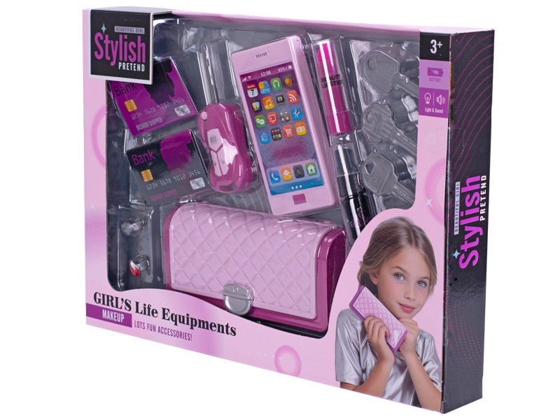 Im Lieferumfang ist alles enthalten, was kleine Fashionistas brauchen: Autoschlüssel, Kamm, Haarspangen und weitere Kleinigkeiten. 3× LR41 Batterien sind bereits beigelegt – einfach auspacken und losspielen.