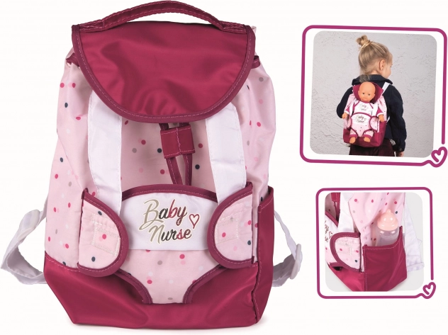 Die Puppentrage mit Stauraum kann bequem auf dem Rücken getragen werden, und dank der Zugbänder und des mit Klettverschluss befestigten Deckels geht unterwegs nichts verloren. An der Seite hat sie eine Tasche für die Flasche für Puppen. Die Rucksackgurte sind verstellbar und können an die Größe des Kindes angepasst werden.