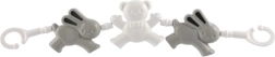 Diese Kunststoffkette für Kinderwagen mit drei Figuren, Bären und Häschen, bietet Ihrem Kind während der Fahrt Unterhaltung und visuelle Stimulation.