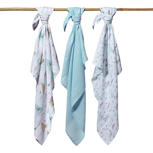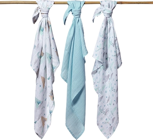 Dank der natürlichen Eigenschaften von Bambus sind die Windeln hautfreundlich und geruchsresistent. Sie sind pflegeleicht, trocknen schnell und bleiben mit jeder Wäsche angenehm weich. Stilvolle Muster und ein zartes Blau passen zur Erstausstattung für Mädchen und Jungen.