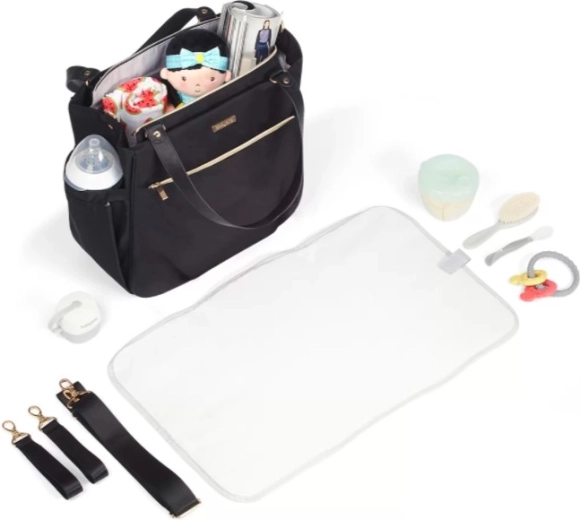 Das strapazierfähige Material mit glatter Oberfläche lässt sich leicht reinigen und hält den Anforderungen des täglichen Gebrauchs sowie wechselnden Witterungsbedingungen stand. Bequeme Griffe, ein abnehmbarer Schulterriemen und seitliche Riemen zur Befestigung am Kinderwagen bieten maximale Flexibilität beim Tragen. Im Lieferumfang enthalten ist außerdem eine praktische Wickelunterlage für komfortable Pflege unterwegs.