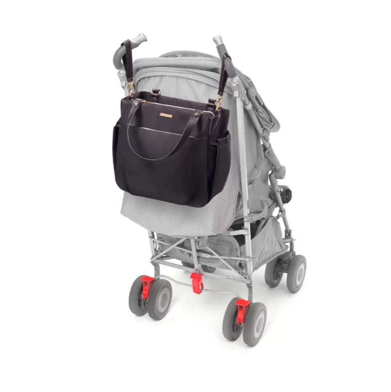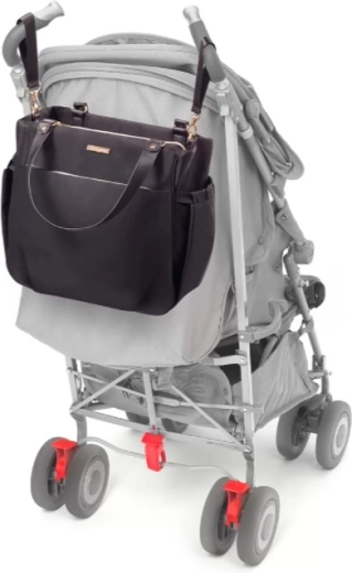 Bequeme Griffe, ein abnehmbarer Schulterriemen und seitliche Riemen zur einfachen Befestigung am Kinderwagen sorgen für maximale Flexibilität und freie Hände.