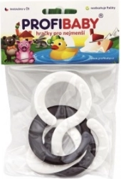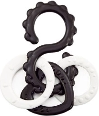 Diese Achterringe mit Anhängern wurden entwickelt, um die visuelle Entwicklung von Neugeborenen zu unterstützen. Die kontrastreiche Schwarz-Weiß-Kombination ist praktisch und effektiv für Babys, deren Sehvermögen sich noch entwickelt.