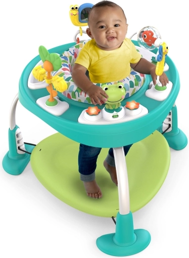 Entdecken Sie die clevere Lösung für tägliches Spielen und Entwickeln – das Aktivitätszentrum BRIGHT STARTS Bounce Bounce Baby wächst mit Ihrem Kind mit. Zunächst dient es als sicheres Hüpfspiel mit drehbarem 360°-Sitz und federnder Matte für komfortables Abstoßen. Später nehmen Sie Matte und Sitz einfach heraus und erstellen einen stehenden Spieltisch mit praktischem Spielzeugnetz.