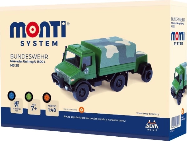 Die Montage ist schnell, sauber und macht Spaß. Einige MONTI SYSTEM Sets bieten für ein noch realistischeres Erscheinungsbild Gummireifen und verchromte Teile. Mit den beiliegenden Aufklebern lassen sich authentische Bundeswehr-Kennzeichnungen und Details anbringen.