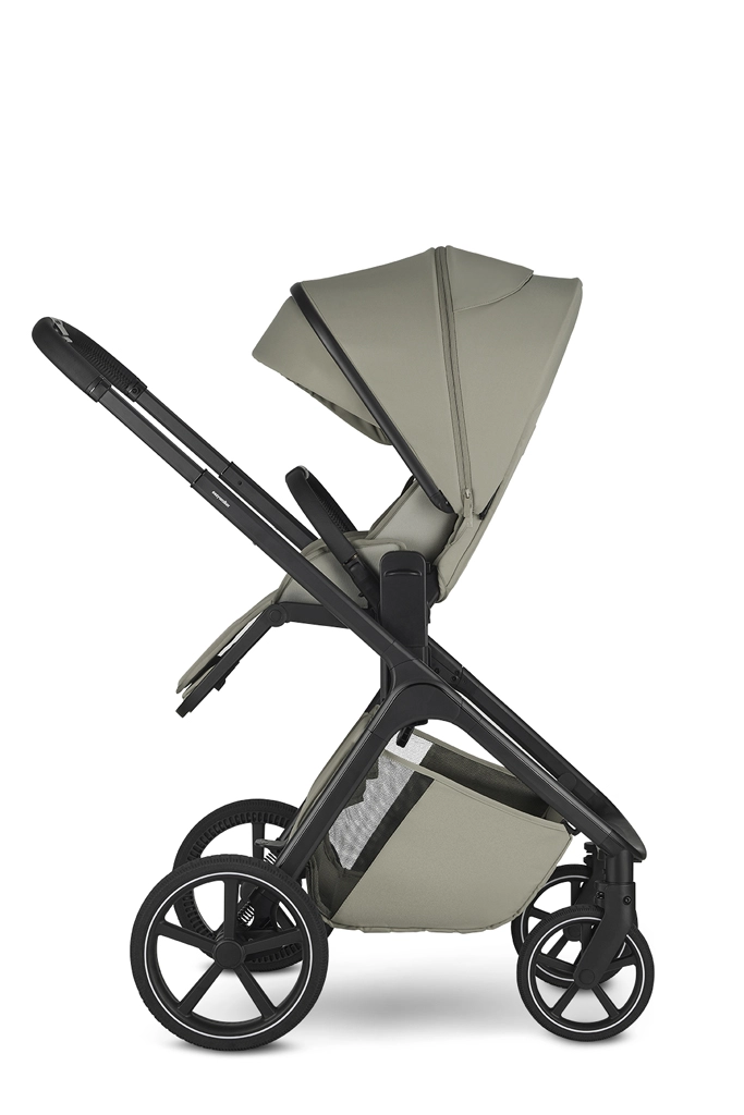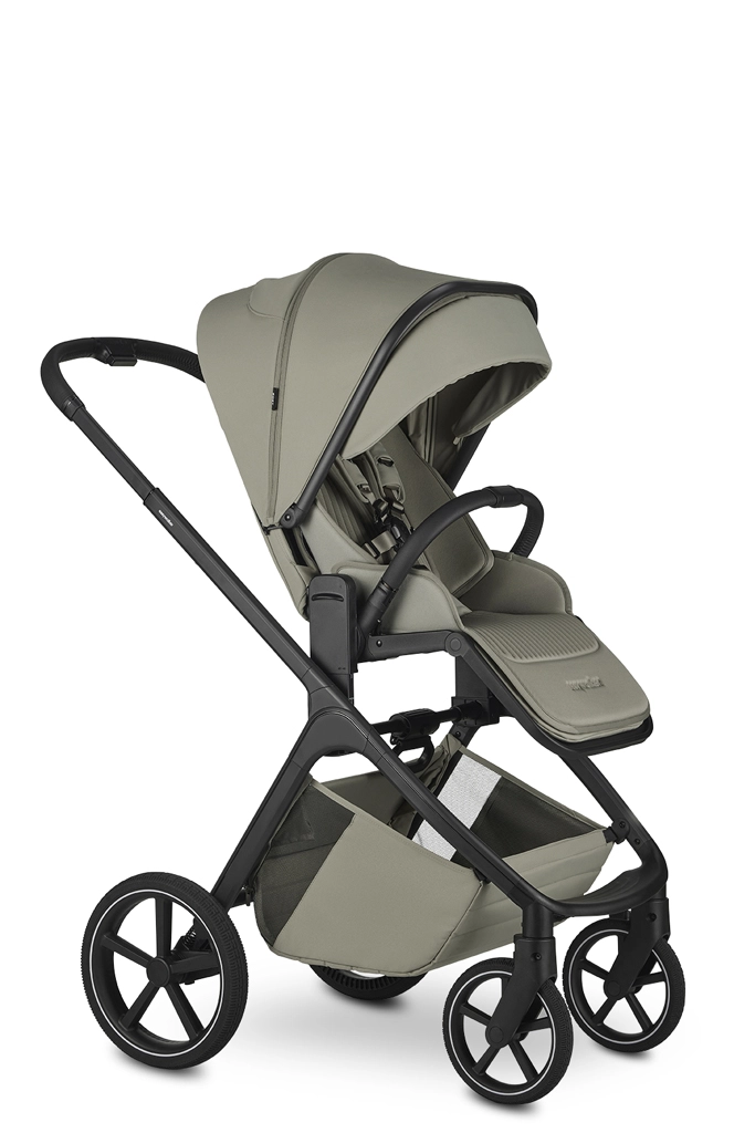 Der Sportsitz bietet drei Neigungspositionen und lässt sich mit einem Handgriff in und gegen die Fahrtrichtung drehen. Die Wanne überzeugt mit einer hochwertigen Matratze, einer Anti-Reflux-Lösung und Belüftung sowohl im Verdeck als auch im unteren Bereich für ein angenehmes Klima. Ein geräumiger Einkaufskorb (bis 7 kg) und ein verstellbarer Schiebegriff sorgen für komfortables Führen.