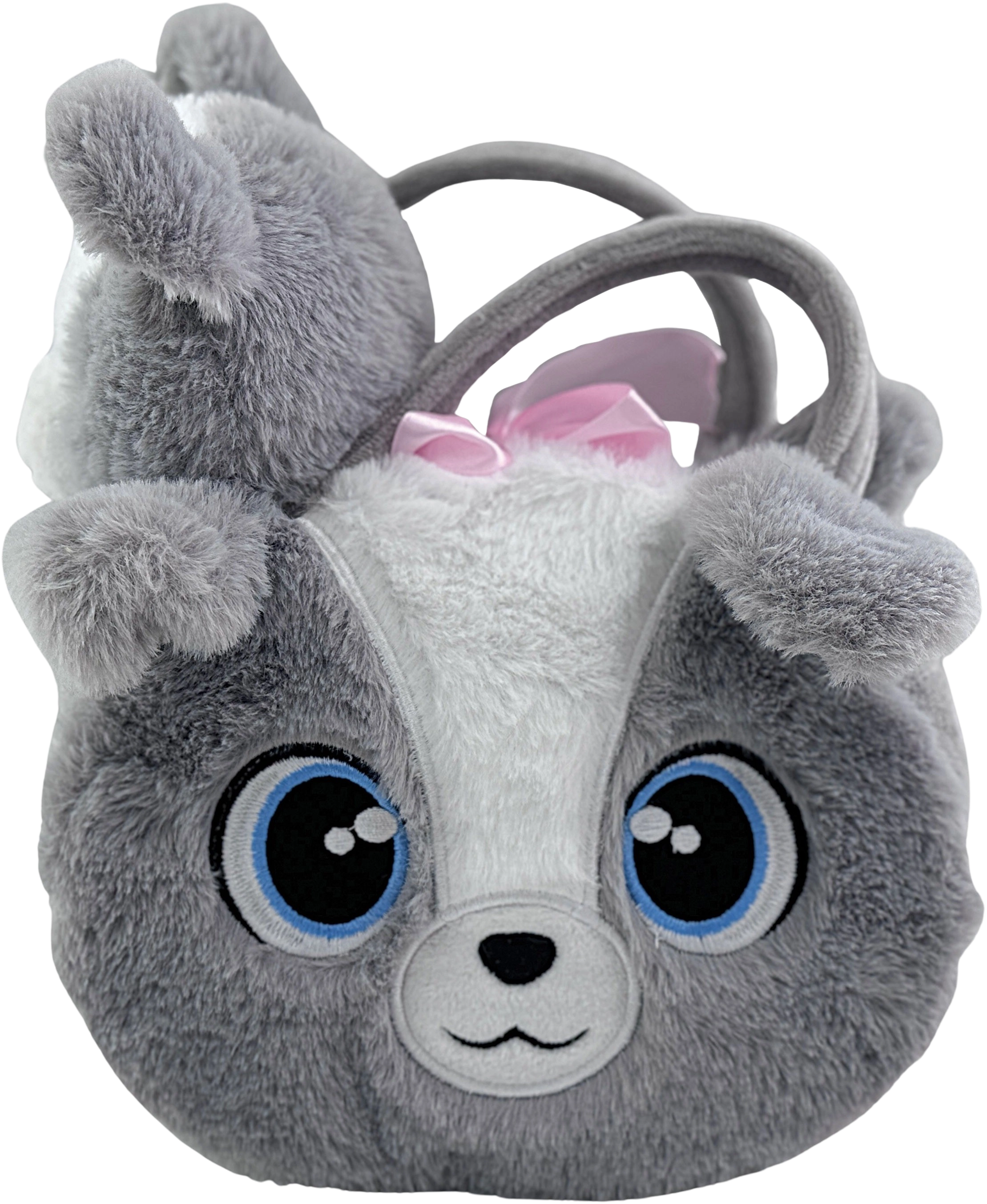 Entdecken Sie den Zauber der süßen Plüsch-Handtasche mit Hund Dante, die jedes Kind erfreut. Die Tasche ist leicht, fühlt sich angenehm an und ist dank des hypoallergenen Plüschs auch für empfindliche Haut geeignet. Im Inneren verbirgt sich ein weiches Hündchen, das Kindern in neuen Situationen ein Gefühl von Sicherheit und Geborgenheit schenkt.