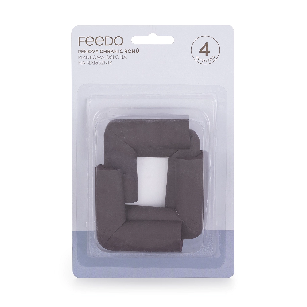 Kindersicherheit an erster Stelle – die weichen Feedo Schaum-Kantenschützer helfen, schmerzhafte Stöße an scharfen Möbelkanten zu verhindern. Dank der braunen Ausführung fügen sie sich optimal in dunklere Oberflächen ein und stören nicht das Erscheinungsbild des Raums.