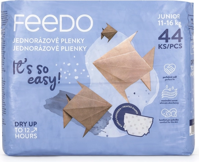 Die FEEDO Windeln Junior 5 wurden entwickelt, um Kindern ganztägige Trockenheit, Bewegungsfreiheit und zuverlässigen Schutz zu bieten. Der superabsorbierende Kern mit Mehrschichtsystem verteilt die Flüssigkeit über die gesamte Fläche und hält sie bis zu 12 Stunden im Inneren. Die atmungsaktive Struktur ermöglicht der Haut zu atmen und reduziert das Risiko von Reizungen.