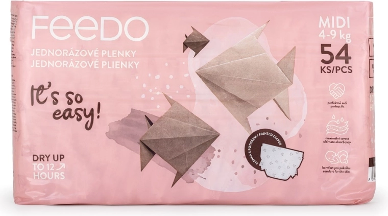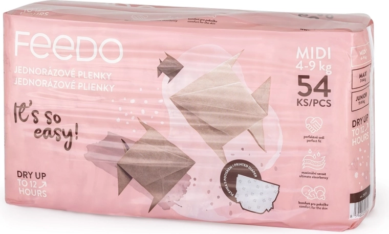 Die FEEDO Midi Windeln wurden für den täglichen Komfort von Babys und Eltern entwickelt. Der dreilagige Saugkern sorgt für ein sofortiges Trockenheitsgefühl und zuverlässigen Schutz am Tag und in der Nacht. Die atmungsaktive Konstruktion unterstützt die Luftzirkulation und hilft, eine gesunde, reizfreie Haut zu bewahren.
