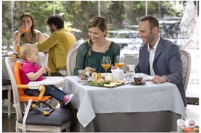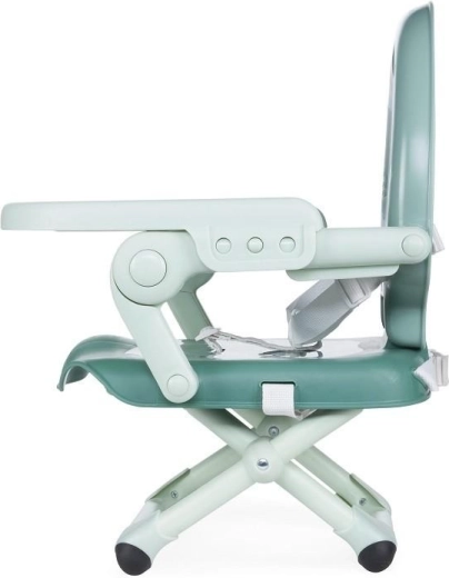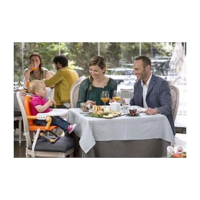 Die kompakte, klappbare Konstruktion mit integriertem Tragegriff erleichtert Transport und Aufbewahrung. Rutschhemmende Elemente und eine stabile Basis tragen zu Sicherheit bei jeder Mahlzeit bei – zu Hause, bei den Großeltern oder im Restaurant.