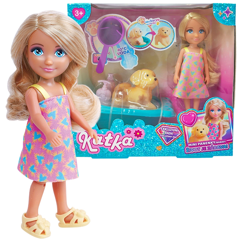 Das Set Puppe Katka mit Hund und Badewanne erfreut jede kleine Fürsorgerin. Die Puppe hat langes, zum Kämmen geeignetes Haar und ein farbenfrohes Outfit, der Hundefreund lädt zum Erfinden von Geschichten ein und die Badewanne in fröhlichen Farben ergänzt die Baderituale der Puppe. Dank hochwertiger Materialien ist das Spiel sicher und widerstandsfähig für den täglichen Gebrauch.