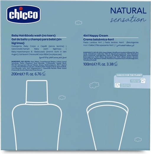 Das Geschenkset CHICCO Natural Sensation Daily Protection ist die ideale Wahl für die tägliche Babypflege. Das 2-in-1 Shampoo & Waschgel reinigt sanft und hinterlässt Haut und Haar weich und leicht kämmbar, während die Wundschutzcreme mit Zink eine schützende Barriere bildet und Reizungen sowie Rötungen wirksam vorbeugt.