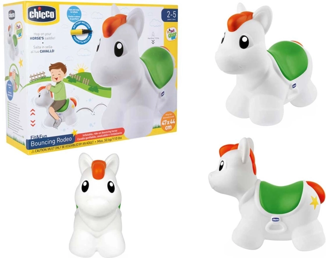 Das aufblasbare Hüpfpferd CHICCO Rodeo ist der ideale Begleiter für die ersten Hüpf- und Abstoßversuche. Dank der sanften Formen, abgerundeten Kanten und des ergonomischen Sitzes sitzt es sich bequem und die Fahrt ist stabil. Das Hüpfspielzeug lässt sich mit der beiliegenden Handpumpe schnell und einfach aufpumpen – so ist es in kürzester Zeit spielbereit.