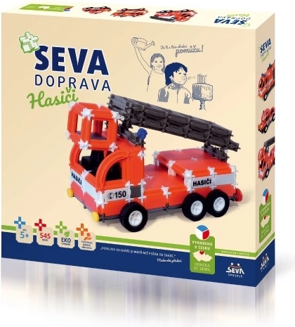Starten Sie den Rettungseinsatz mit dem Baukasten SEVA VERKEHR – Feuerwehr mit 545 Teilen! Bauen Sie ein Feuerwehrfahrzeug mit Hubarbeitsbühne, einen Tankwagen mit drehbarem Tank sowie ein Einsatzleit- bzw. Technikfahrzeug. Enthalten sind Aufkleber HASIČI/RESCUE/FIRE und die Nummer 150. Ideal für Kinder ab 5 Jahren.