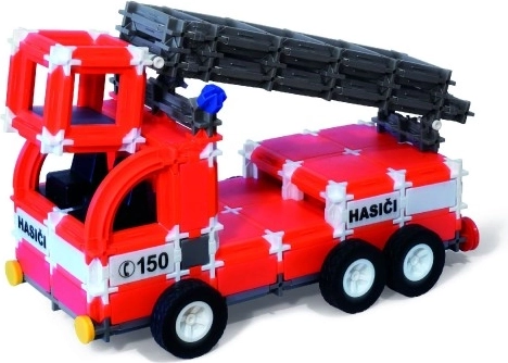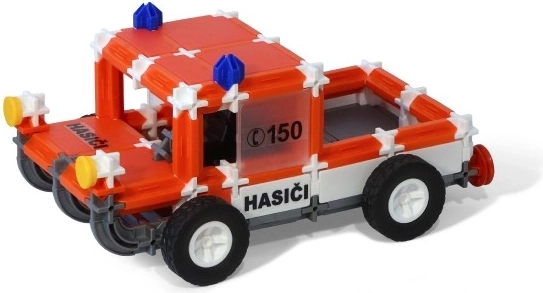 Bauen Sie ein Feuerwehrfahrzeug mit Hubarbeitsbühne, einen großen Tankwagen mit Drehmöglichkeit sowie ein Einsatzleit- (Technik-)Fahrzeug. Dazu passen thematische Aufkleber „HASIČI, RESCUE, FIRE“ und die Notrufnummer 150, die Kindern hilft, wichtige Sicherheitsgrundsätze zu lernen.