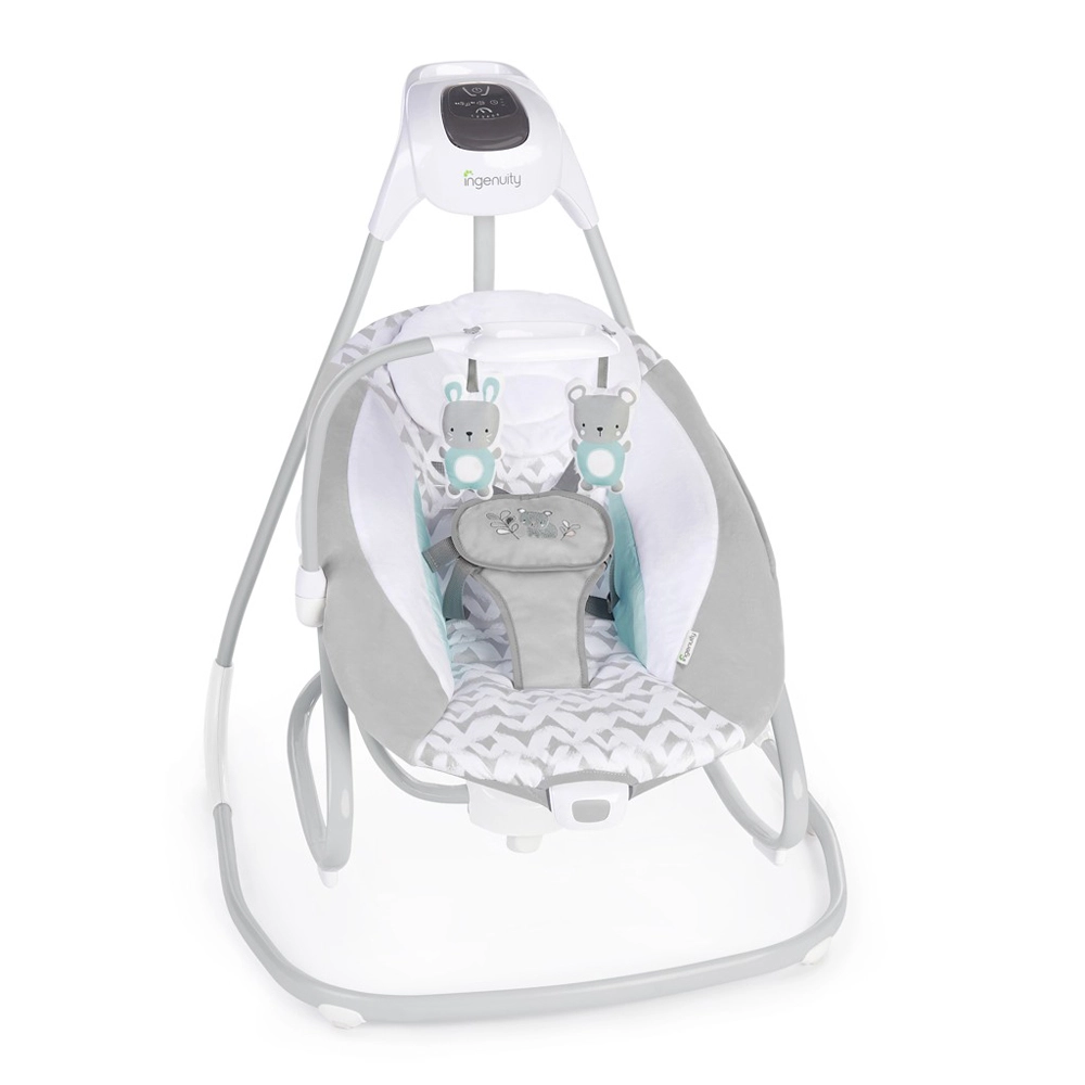 Ingenuity Raylan bringt Ruhe und Komfort im kompakten Format. Dank zwei Betriebsarten – als Schaukel oder als eigenständige Wippe – passt sie sich leicht dem Tagesablauf an. Die leise WhisperQuiet-Technologie, bis zu 6 Schaukelstufen und die 180°-Drehung des Sitzes für Schaukeln in 3 Richtungen helfen, Ihr Baby schneller zu beruhigen und zu beschäftigen. Ein Schaukel-Timer (30/45/60 Min.) sowie das automatische Abschalten von Melodien und Vibrationen sparen Energie und Aufmerksamkeit.