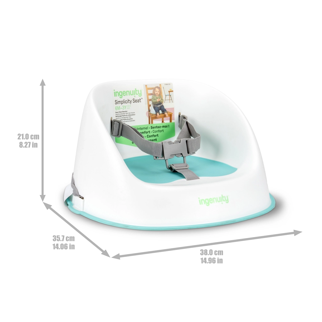 Die Sitzerhöhung Ingenuity Simplicity Seat unterstützt Kinder beim nahtlosen Übergang vom Hochstuhl an den Familientisch. Das leichte, kompakte Design ohne Montageaufwand: auspacken, befestigen und sofort verwenden. Weiche Kontaktflächen sorgen für Komfort, während die robuste, abwischbare Basis und waschbare Gurte auch dem täglichen Chaos standhalten.
