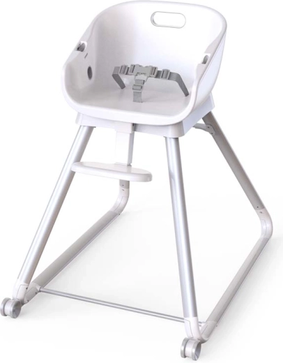 Abnehmbares BPA-freies Tablett spülmaschinengeeignet, Bezüge einfach abwischbar. Vorderräder ermöglichen das schnelle Umstellen des Stuhls mit einer Hand.