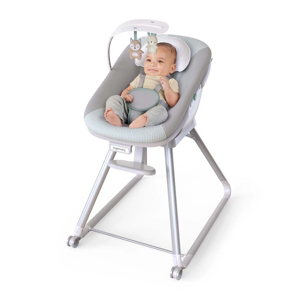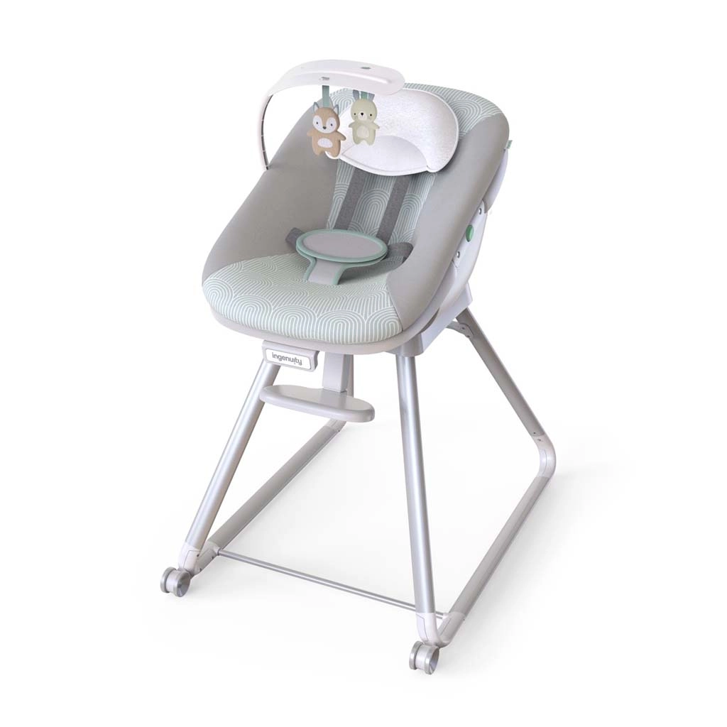 Entdecken Sie die smarte Lösung für Ess- und Wohnzimmer: Der Ingenuity Beanstalk 6-in-1 vereint Komfort, Sicherheit und Langlebigkeit in einem Produkt. Von der beruhigenden Wippe mit Spielbügel und sanften Vibrationen für Neugeborene bis zum praktischen Hochstuhl mit Tablett und Stuhl am Tisch – alles in einem, leicht umbaubaren System.
