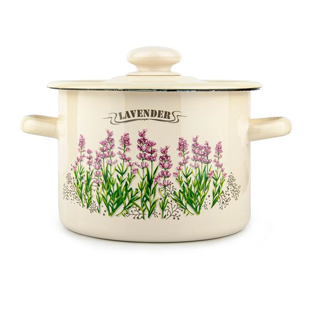 Entdecken Sie den Charme traditioneller Emaille in modernem Design. Dieser emaillierte Topf mit Deckel im Lavendel-Dekor ist nicht nur robust und hygienisch, sondern ergänzt auch Ihre Küche auf ansprechende Weise. Dank seiner Vielseitigkeit ist er mit allen Herdarten einschließlich Induktion kompatibel und meistert die tägliche Beanspruchung.