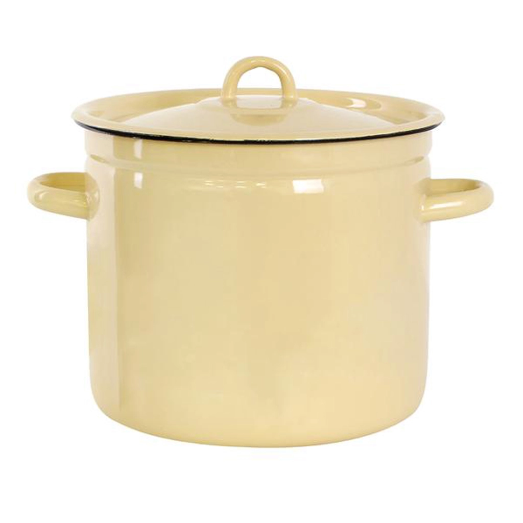 Der traditionelle Emaille-Topf ist ideal für das tägliche Kochen von Suppen, Soßen und größeren Portionen. Die hochwertige Emaille bietet hohe Widerstandsfähigkeit, einfache Pflege und eine lange Lebensdauer. Die elegante beige Oberfläche mit Gemüsedekor verleiht Ihrer Küche einen gemütlichen, ländlichen Charme.