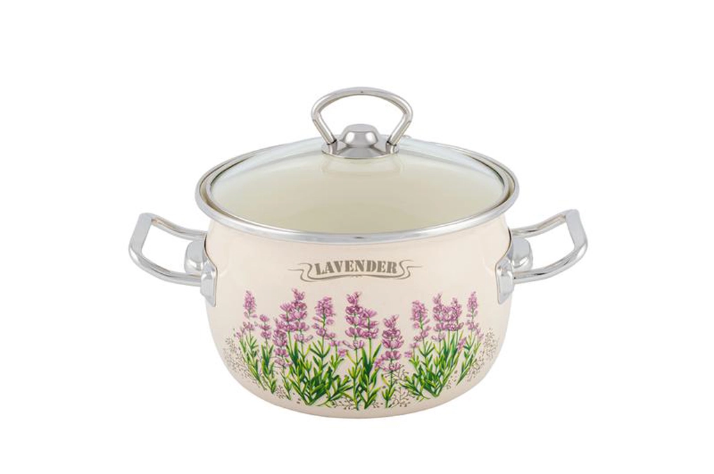 Entdecken Sie ein praktisches und stilvolles Küchenaccessoire: ein bauchiger emaillierter Topf mit elegantem Lavendel-Dekor. Dank hochwertiger Emaille ist er kratzfest und leicht zu reinigen, während der Glasdeckel es ermöglicht, den Kochvorgang stets im Blick zu behalten. Das Volumen von 2,5 Litern ist perfekt für Suppen, Saucen und das tägliche Familienkochen.
