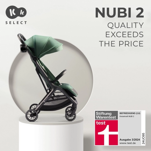 Der KINDERKRAFT Nubi 2 ist ein eleganter City-Kinderwagen für Eltern, die Wert auf Leichtigkeit, einfache Handhabung und hohe Sicherheit legen. Dank des automatischen Faltens mit einer Bewegung und einem Gewicht unter 8 kg ist er perfekt für den Alltag und den Urlaub. Die stufenlose Verstellung der Rückenlehne bis zur Liegeposition und die zweistufige Fußstützenverstellung sorgen für Komfort vom Neugeborenen bis zum Kleinkind.